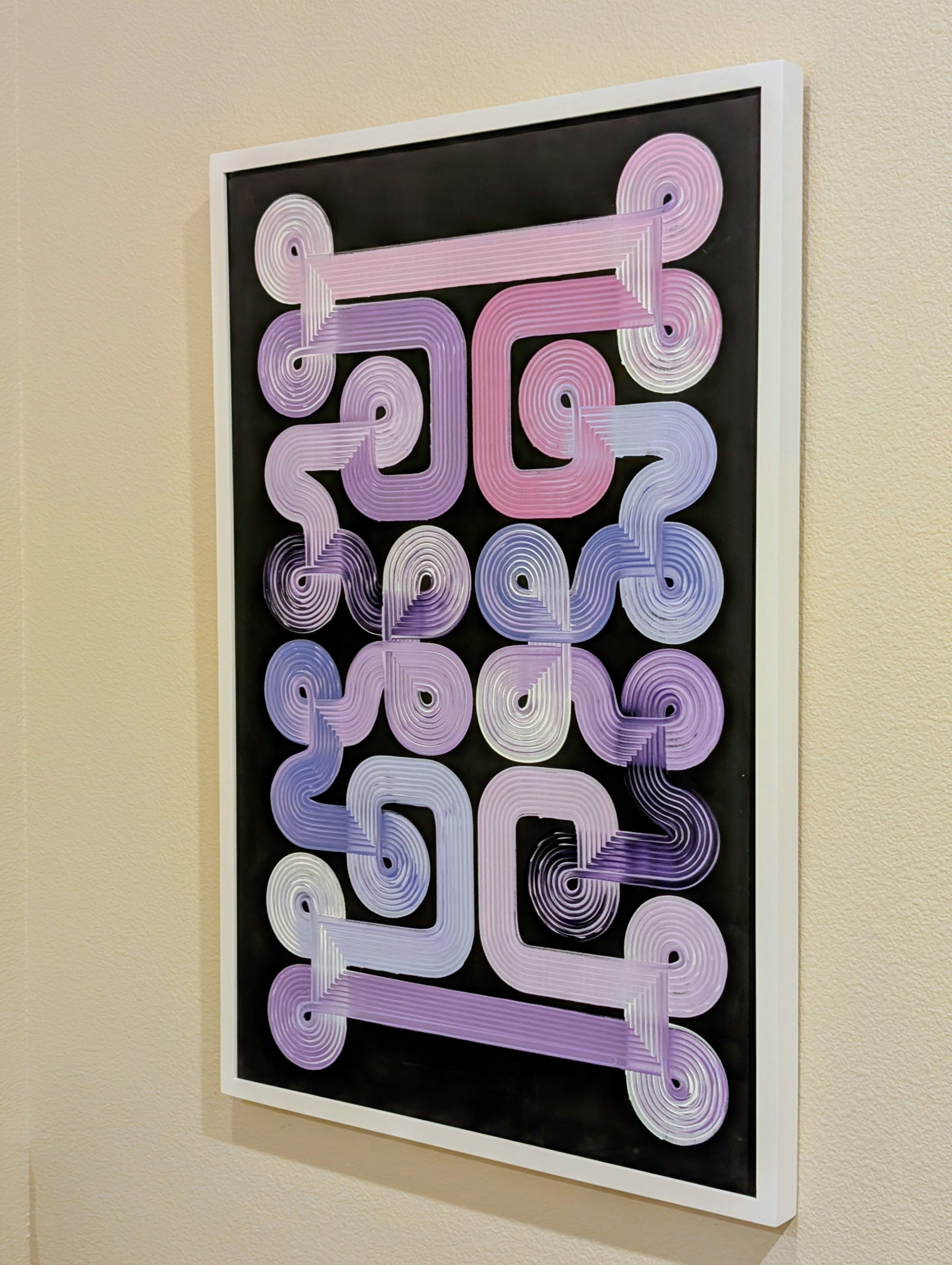 Design 51, Purple color combo on 24 x 36 inch canvas in white frame.