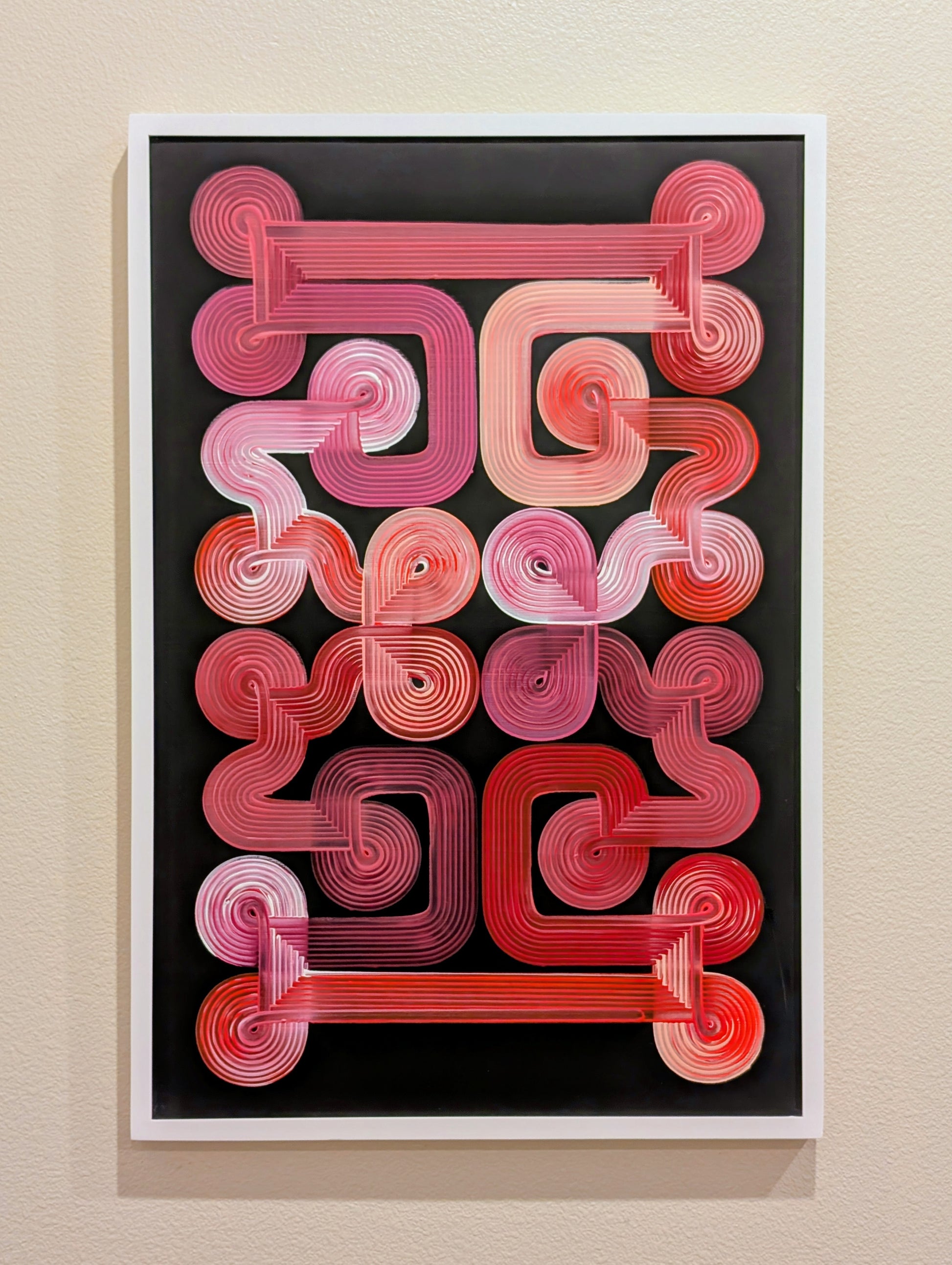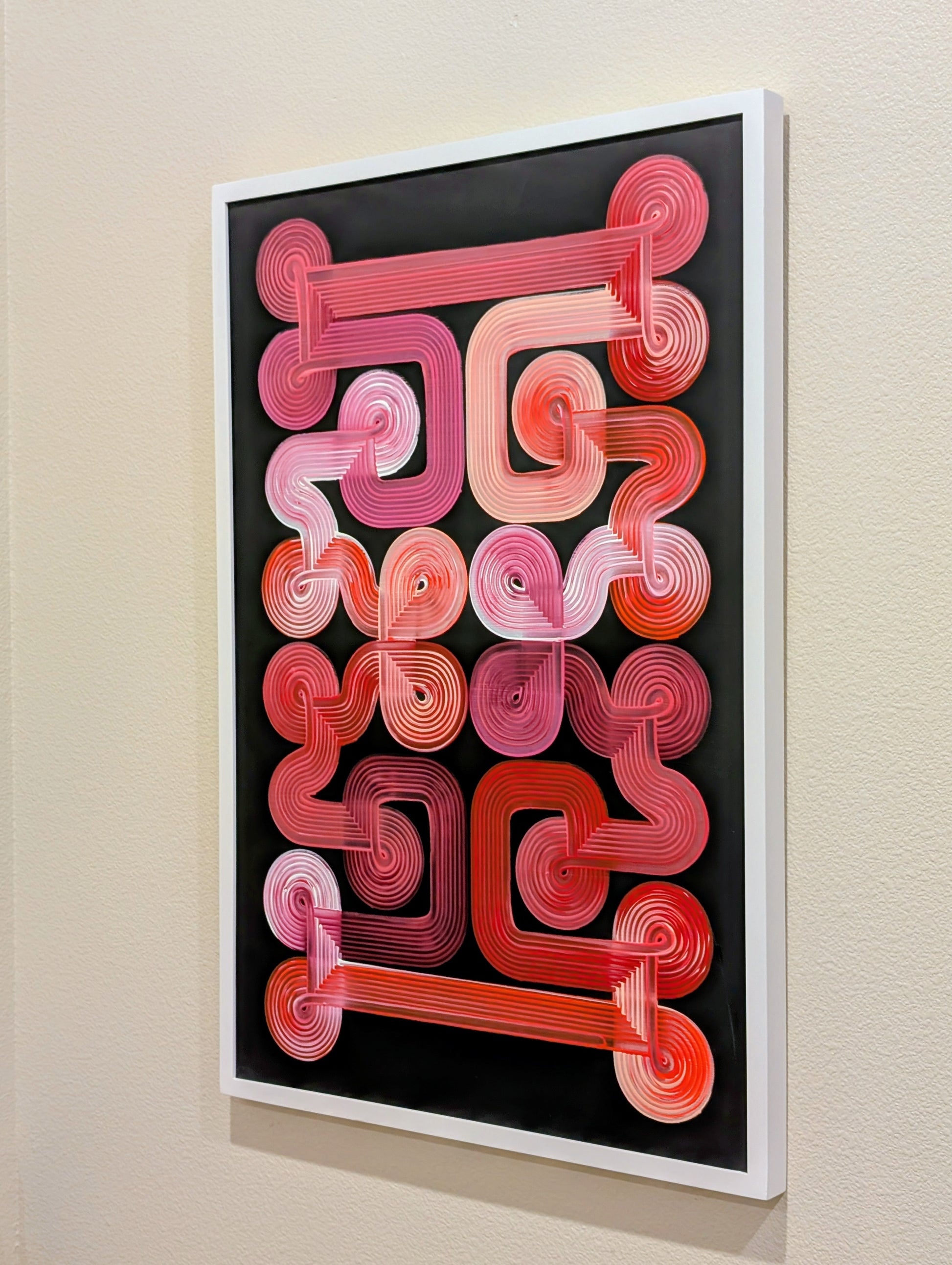 Design 51, Red color combo on 24 x 36 inch canvas in white frame.