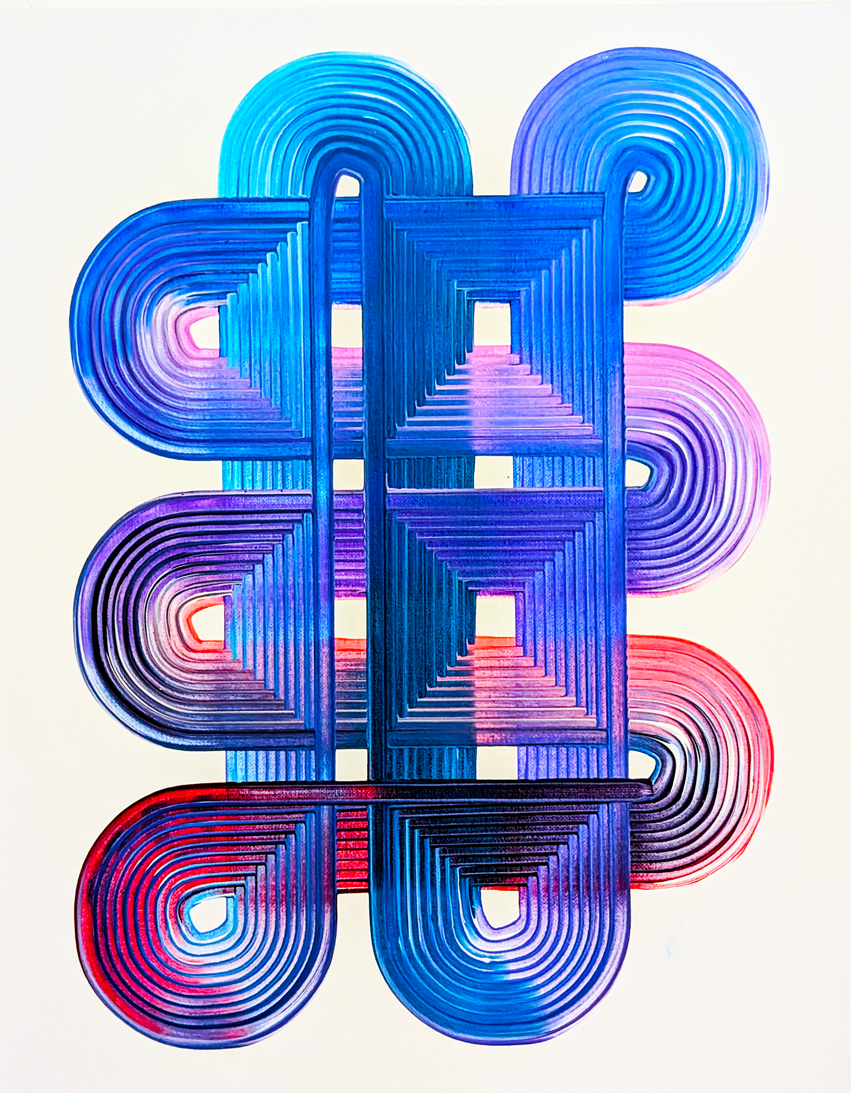 Design #7 - Blue Red Purple Color Combo, acrylic painting on 16 x 20 inch canvas.